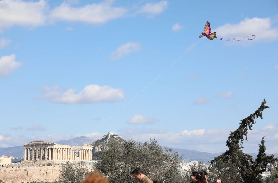 Οι πρώτοι χαρταετοί έκαναν από νωρίς το πρωί της εμφάνισή τους στον λόφο του Φιλοπάππου, τον Λυκαβηττό και άλλα ανοιχτά μέρη.
