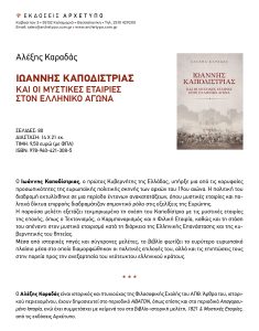 Το παρόν πόνημα αποτελεί μια σημαντική και εξαιρετικά επίκαιρη παρέμβαση σε σύγχρονους προβληματισμούς γύρω από την προσωπικότητα, το έργο και το στιλ ηγεσίας του Ιωάννη Καποδίστρια. Ο συγγραφέας, ο Αλέξης Καραδάς, είναι ιστορικός, απόφοιτος της Φιλοσοφικής Σχολής του ΑΠΘ με πλούσιο συγγραφικό έργο σχετικά με τη δράση των μυστικών εταιρειών.