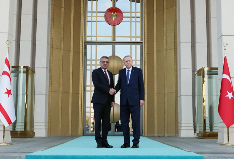 Ο Ρετζέπ Ταγίπ Ερντογάν υποδέχθηκε την Πέμπτη τον Τουφάν Ερχιουρμάν, στην πρώτη επίσημη επίσκεψη στην Τουρκία μετά την εκλογή του στα Κατεχόμενα της Κύπρου.