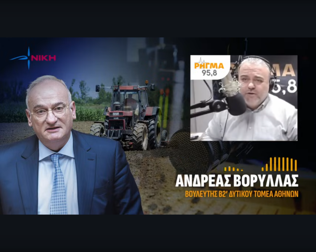 Στον ραδιοφωνικό Σταθμό Ρήγμα 95,8 του Ηρακλείου Κρήτης μίλησε ο Βουλευτής Β2 Δυτικού Τομέα Αθηνών κ. Ανδρέας Βορύλλας για τις αγροτικές κινητοποιήσεις και τα πραγματικά προβλήματα του πρωτογενούς τομέα στην Ελλάδα. Με στοιχεία ο κ. Βορύλλας αναφέρθηκε στα πραγματικά προβλήματα που ταλανίζουν διαχρονικά τον αγροτικό τομέα στη χώρα μας σημειώνοντας χαρακτηριστικά οτι η Ολλανδία έχει εξαγωγές που φθάνουν τα 123 δις και η Ελλάδα μόλις τα 10 δις. Ένα άλλο στοιχείο που παρέθεσε και προκαλεί ενδιαφέρον είναι η απόδοση που καταγράφεται ανά στρέμμα στην Ολλανδία , το Ισραήλ και την Ελλάδα. Σύμφωνα με τα στοιχεία που έδωσε στην δημοσιότητα ο κ. Βορύλλας στην Ολλανδία η απόδοση ανά στρέμμα φθάνει τα 1700 ευρώ στο Ισραήλ τα 1260 και στην ελλάδα τα 190 ευρώ.
